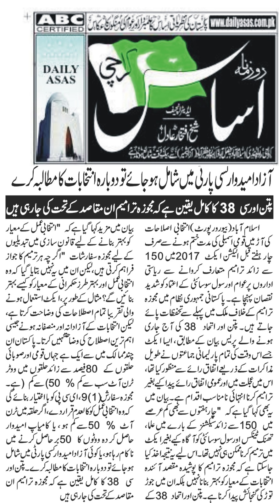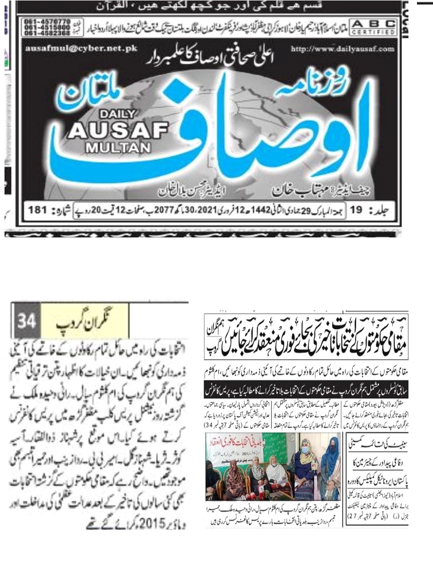 11 February 2021, Daily Ausaf Multan, Local Government Elections should be held immediately