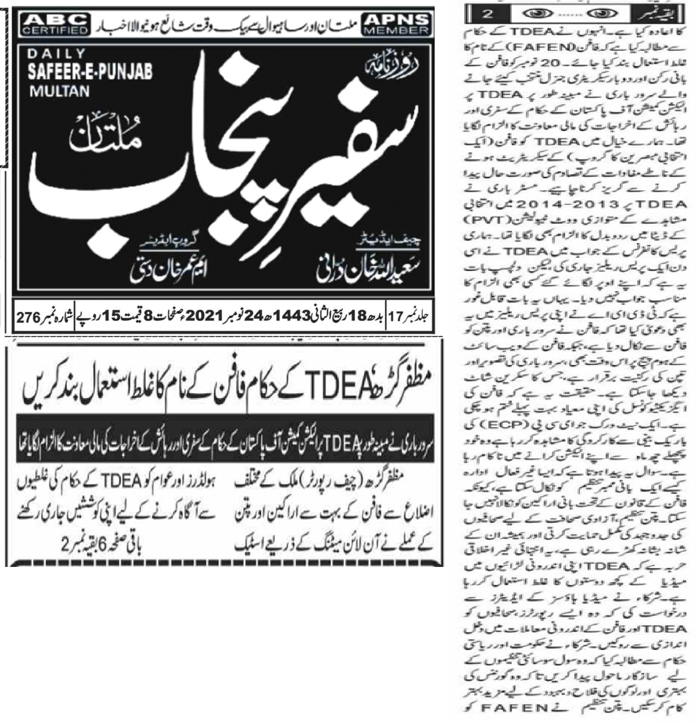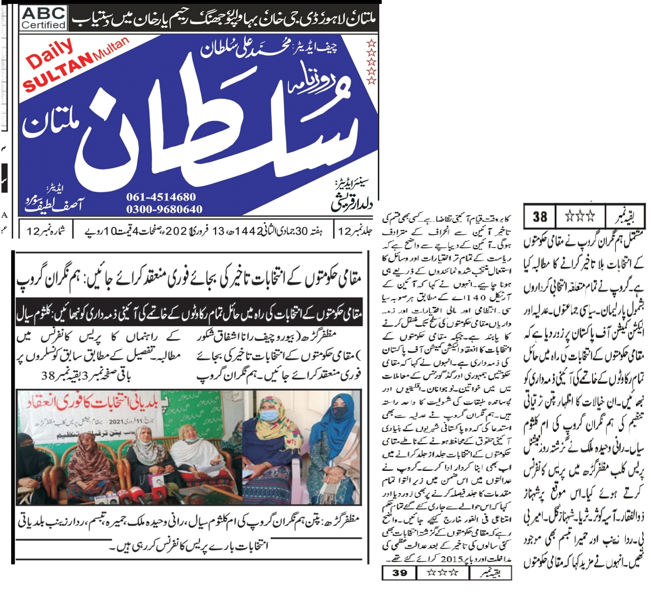 11 February 2021, Daily Sultan Multan, Local Government Elections should be held immediately