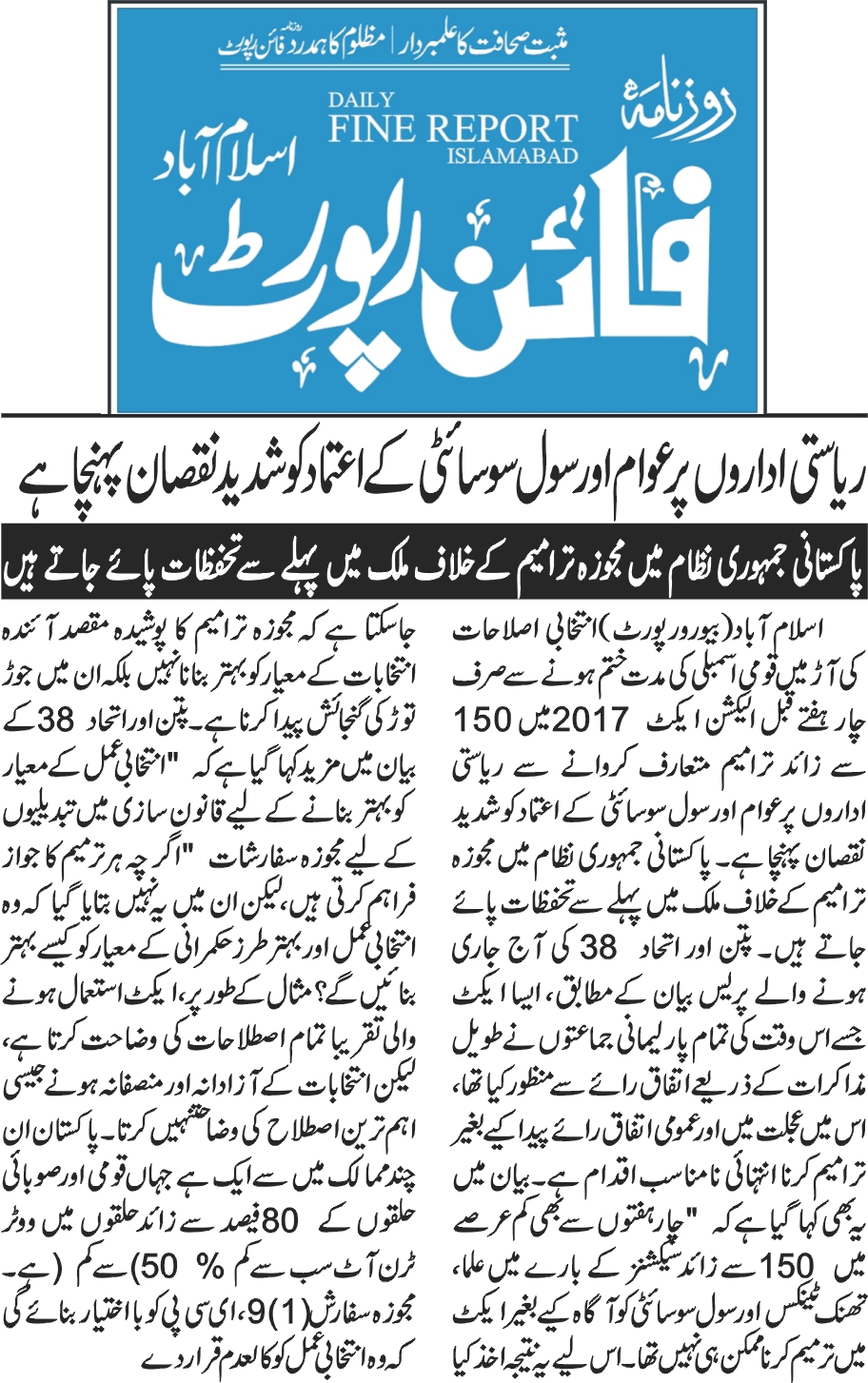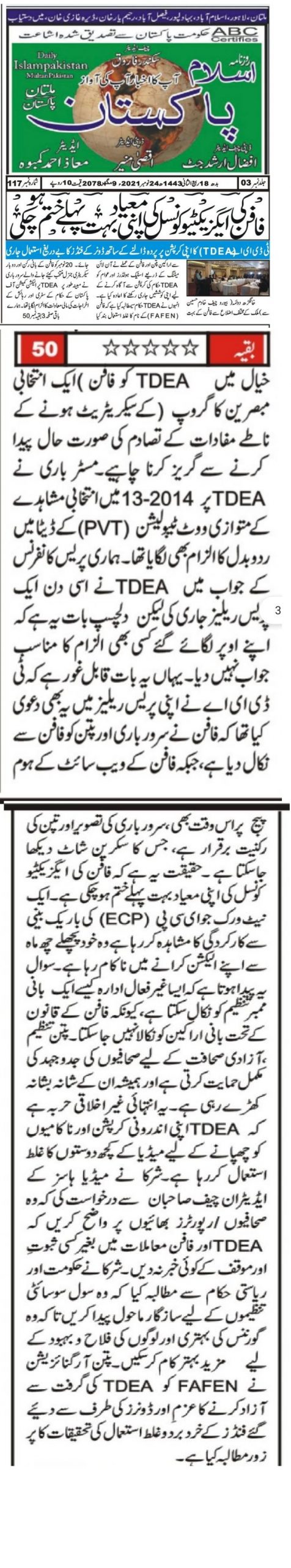 Media Coverage of FAFEN Declaration Issued in Islamabad