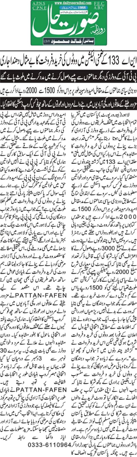 7 February 2025, Fayyaz Raja V-log on Pattan Report “War on Voters”