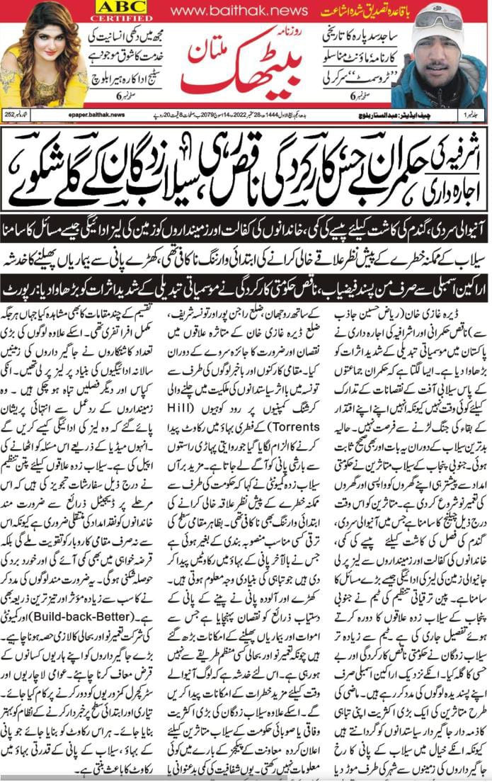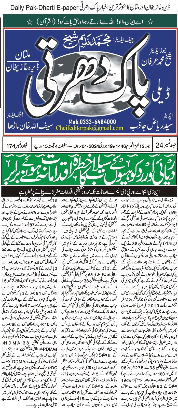 8 October 2024, Daily Sada-e-sach islamabad, Govt fails to improve disaster risk management