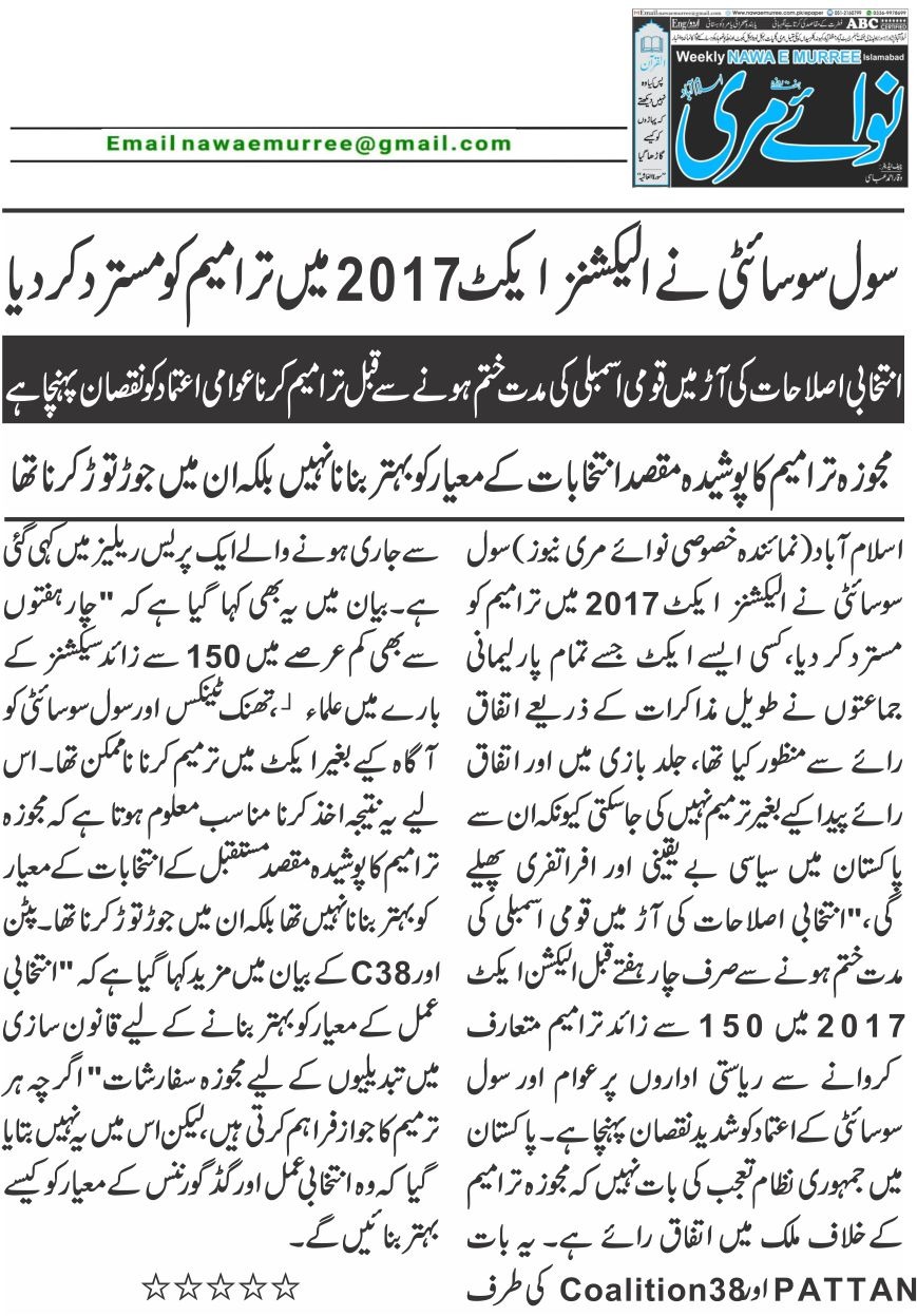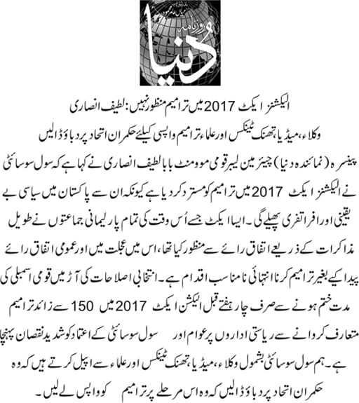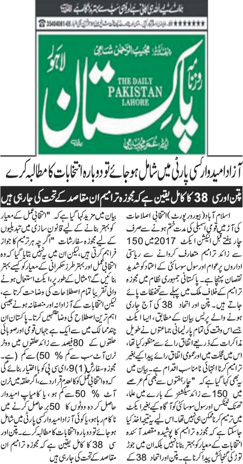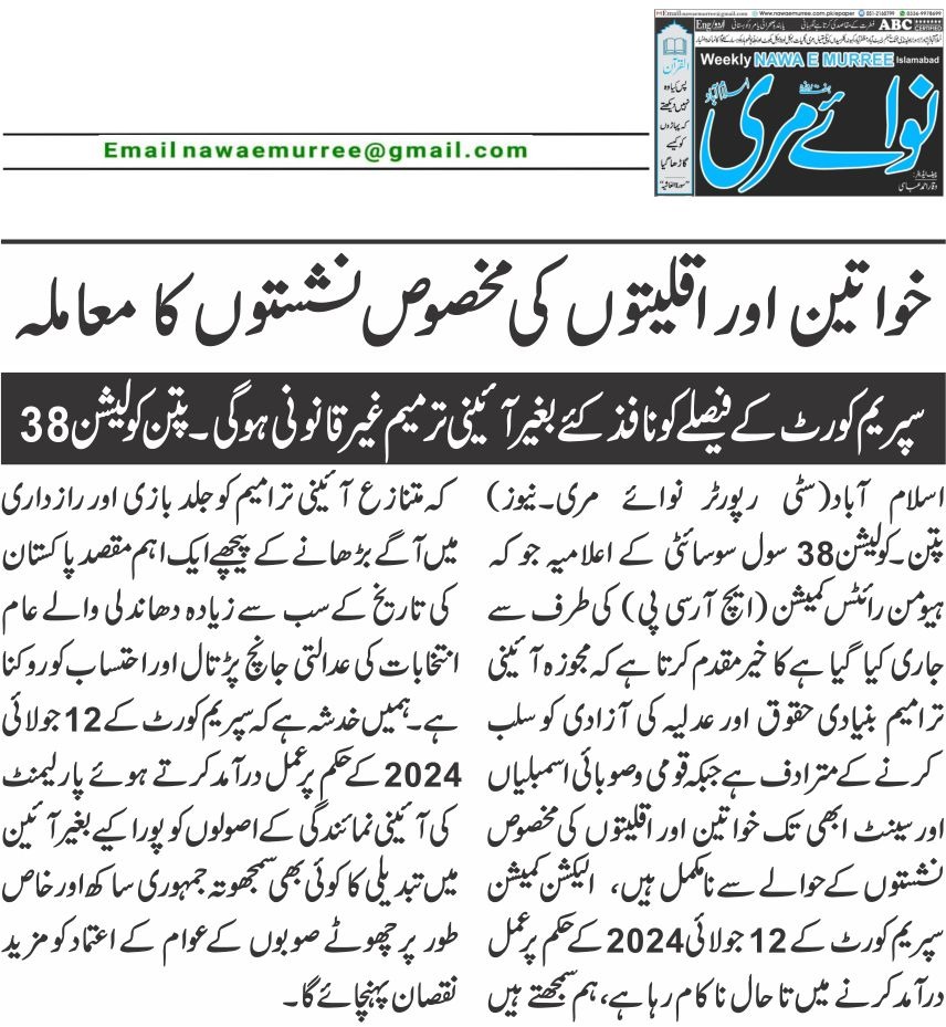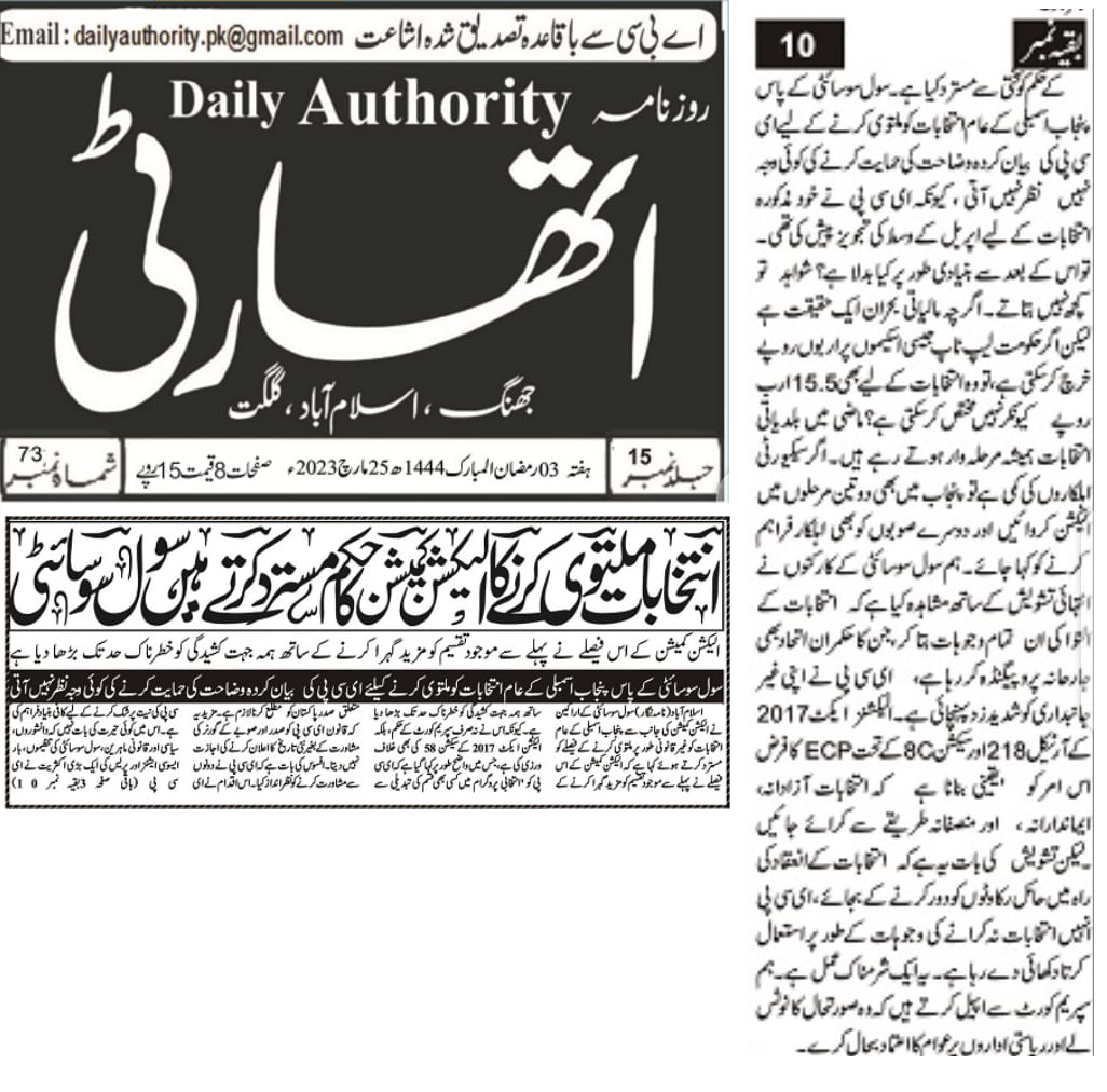 6 June 2024, The News, ‘ECP and courts urged to complete election related cases on priority basis’
