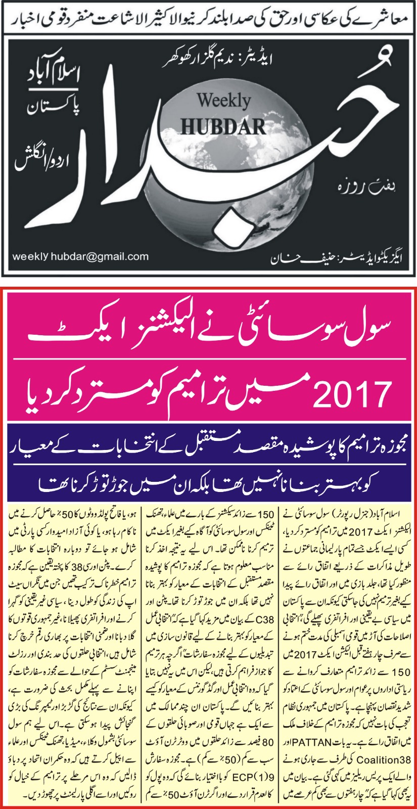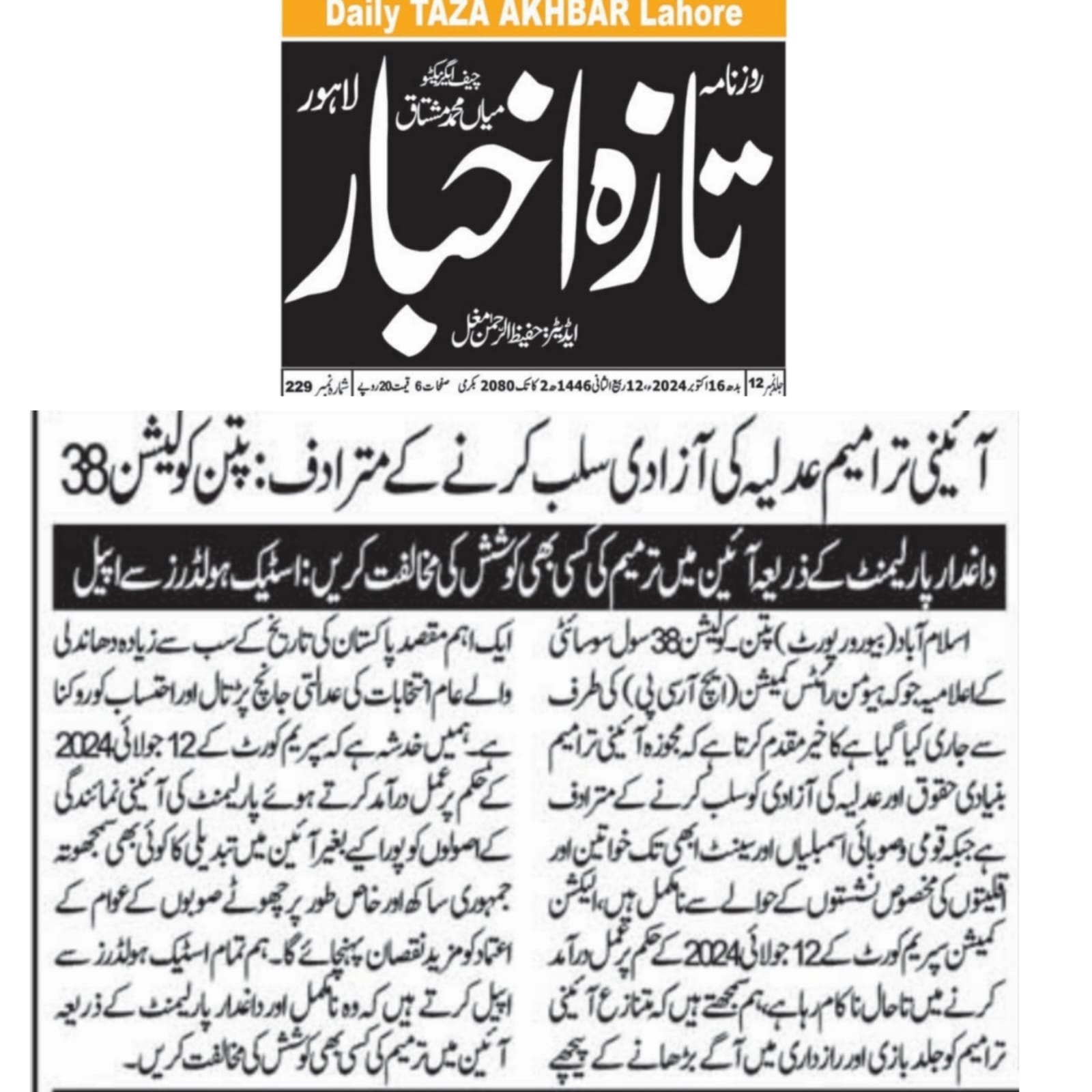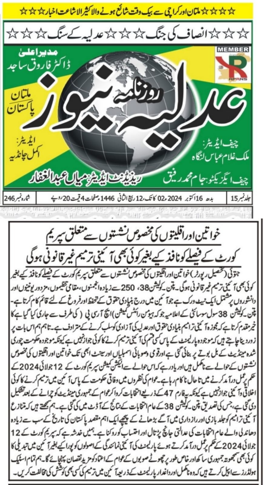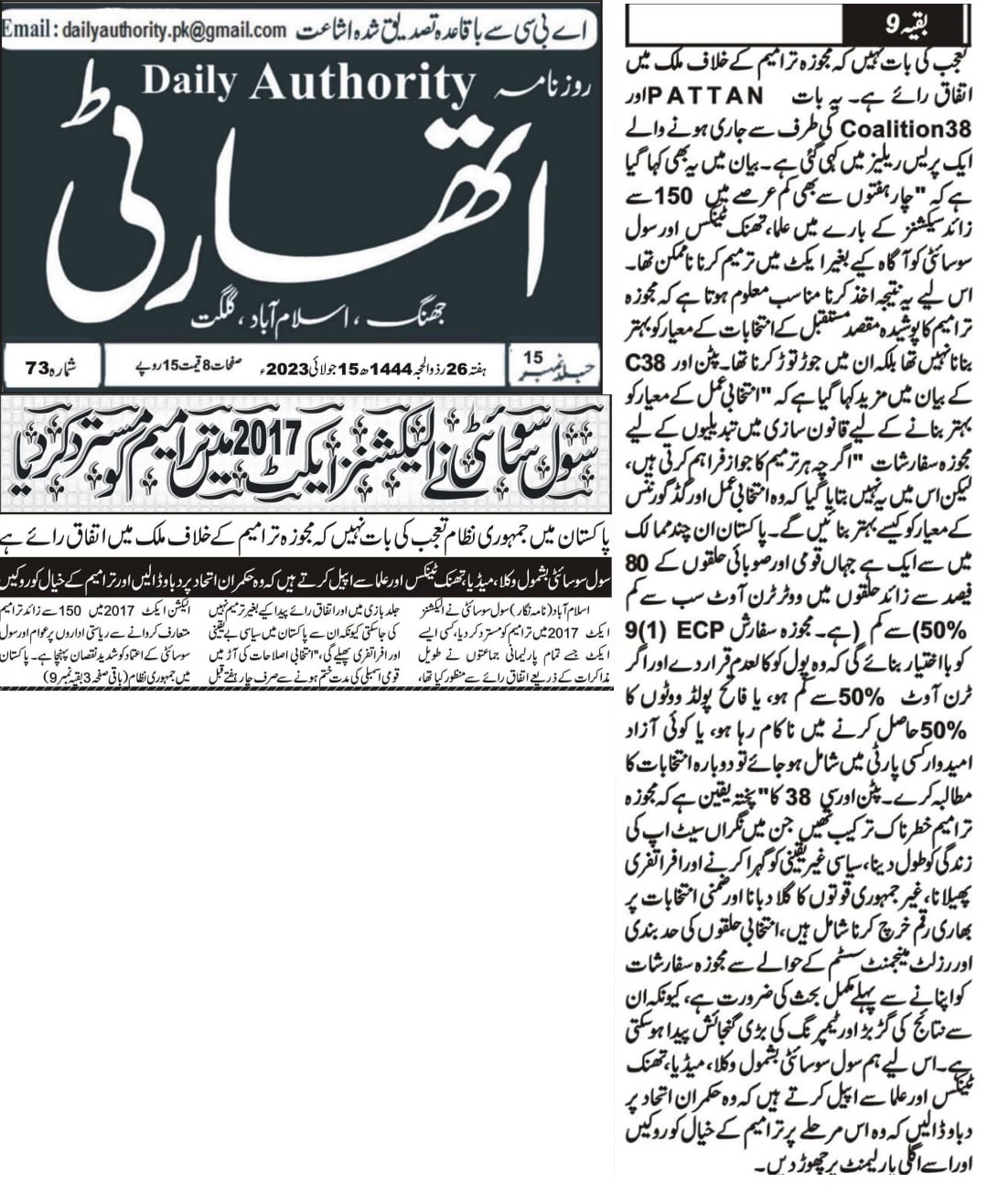 6 June 2024, The News, ‘ECP and courts urged to complete election related cases on priority basis’