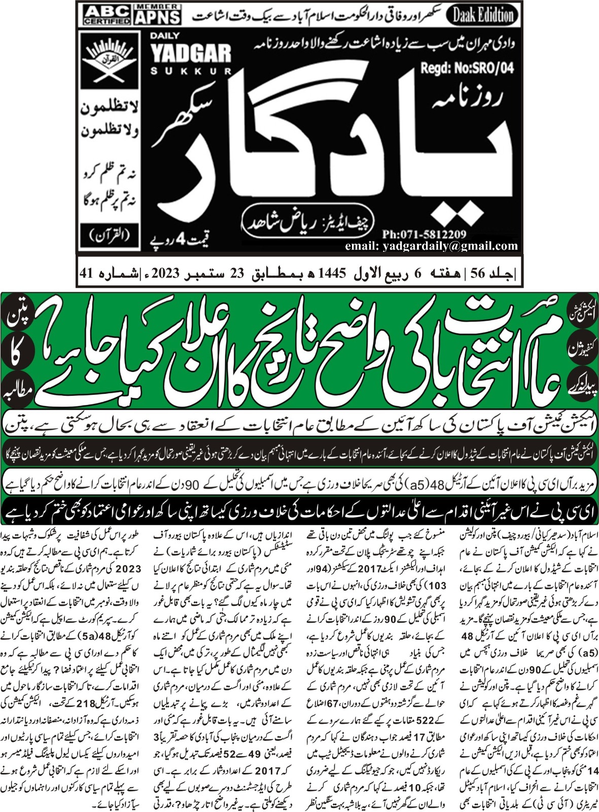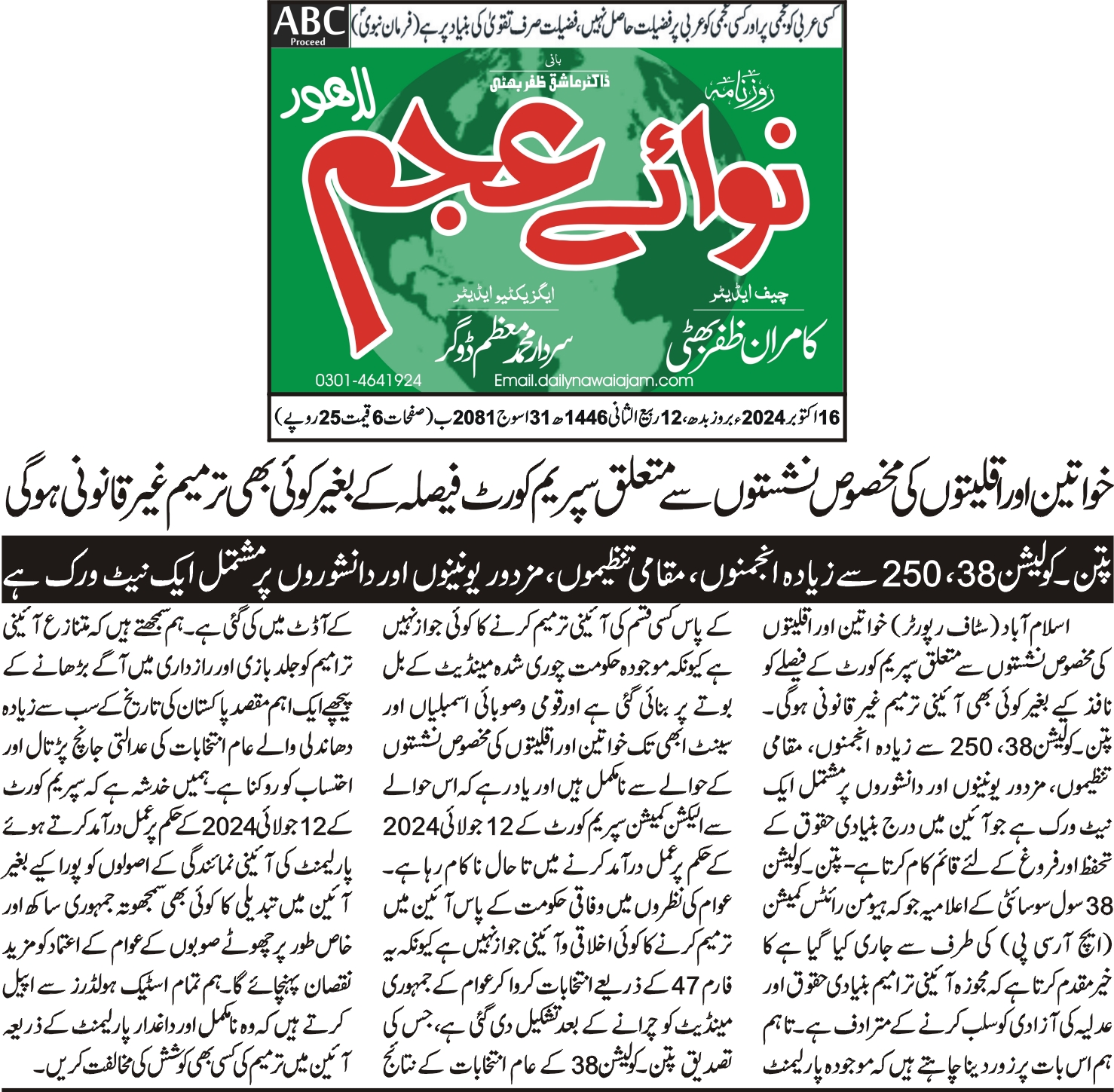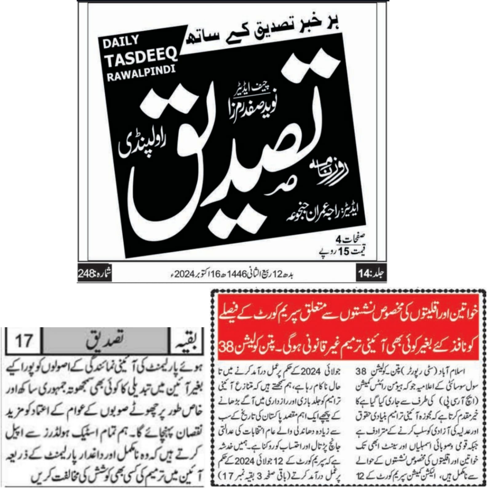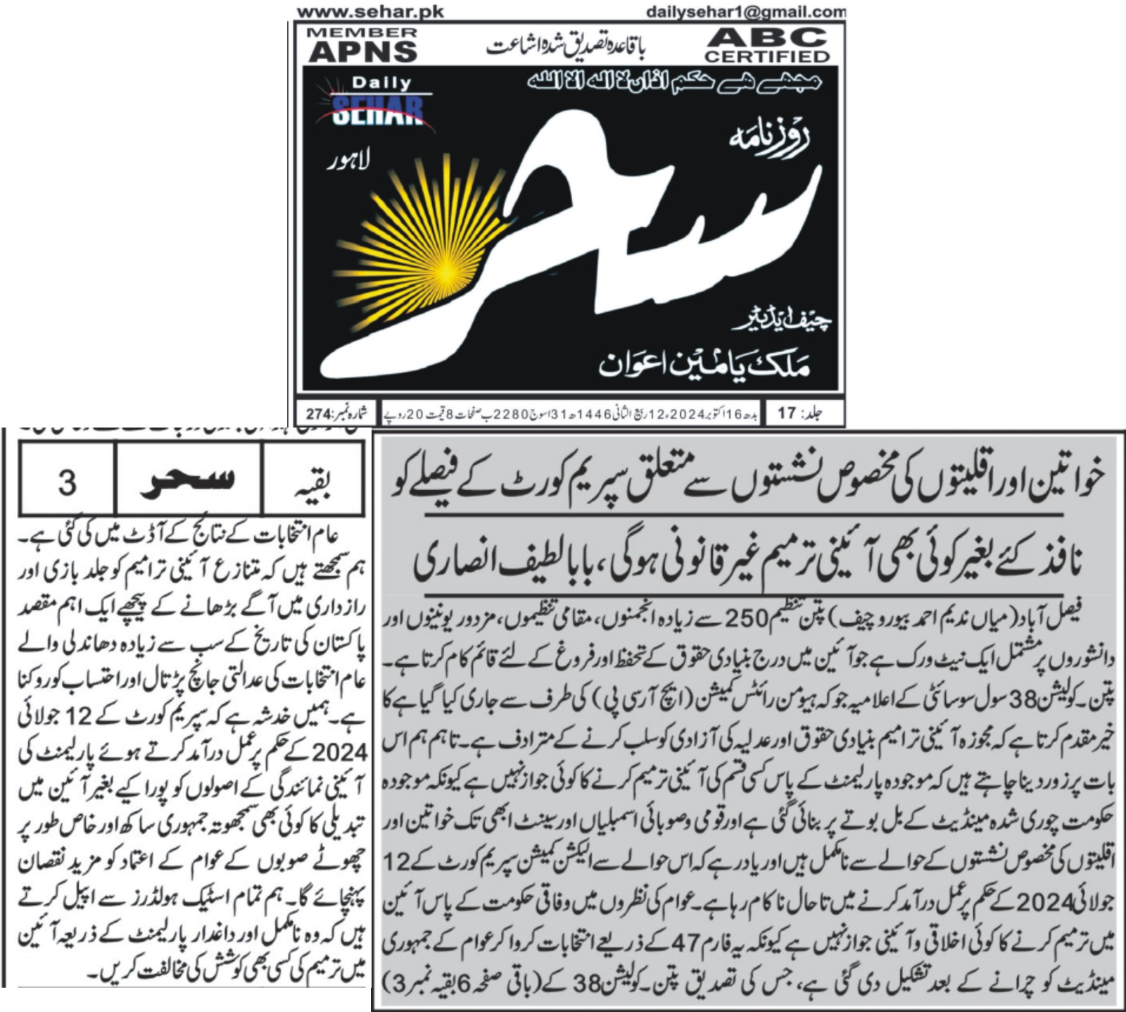 6 June 2024, The News, ‘ECP and courts urged to complete election related cases on priority basis’