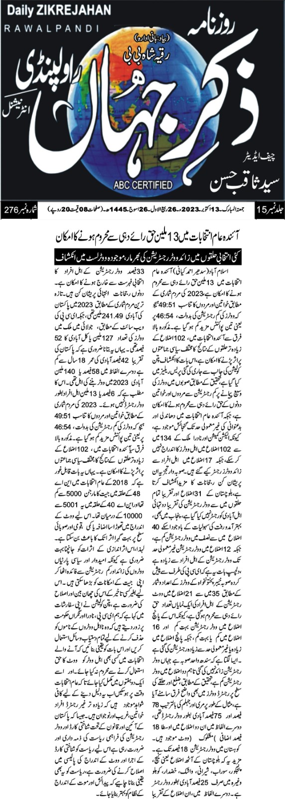 13 February 2024, The News, preliminary report about polling