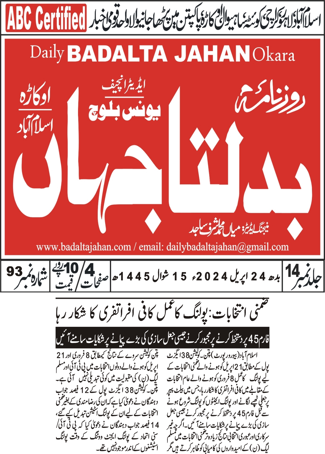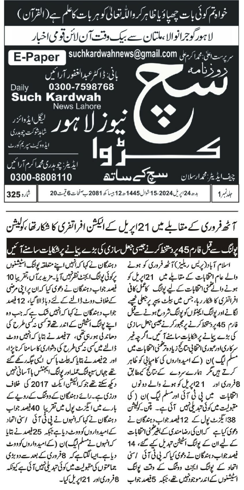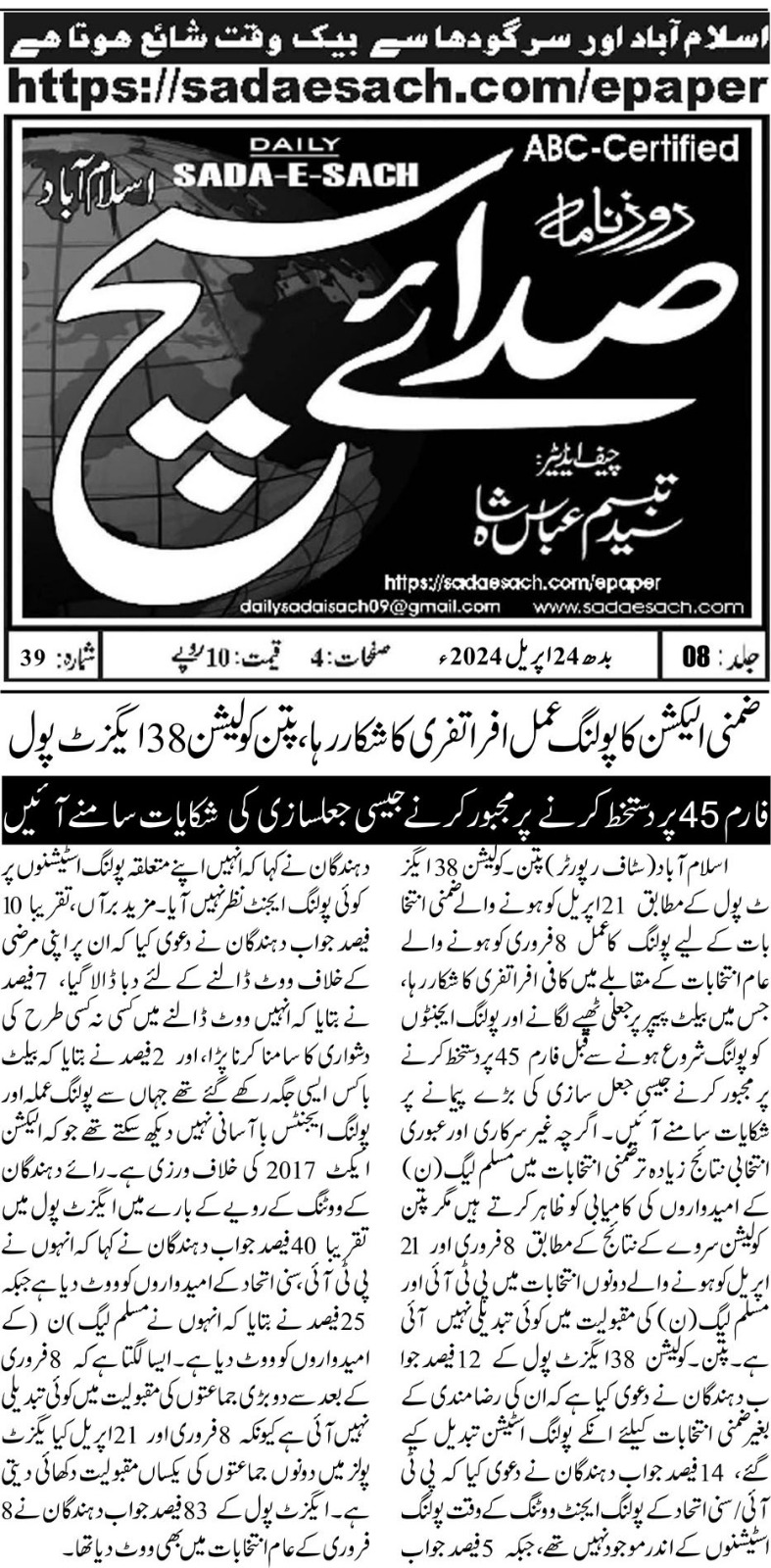 24 April 2024, Sadai Such Islamabad, Chaos and Concerns: By-Election Irregularities in Pakistan