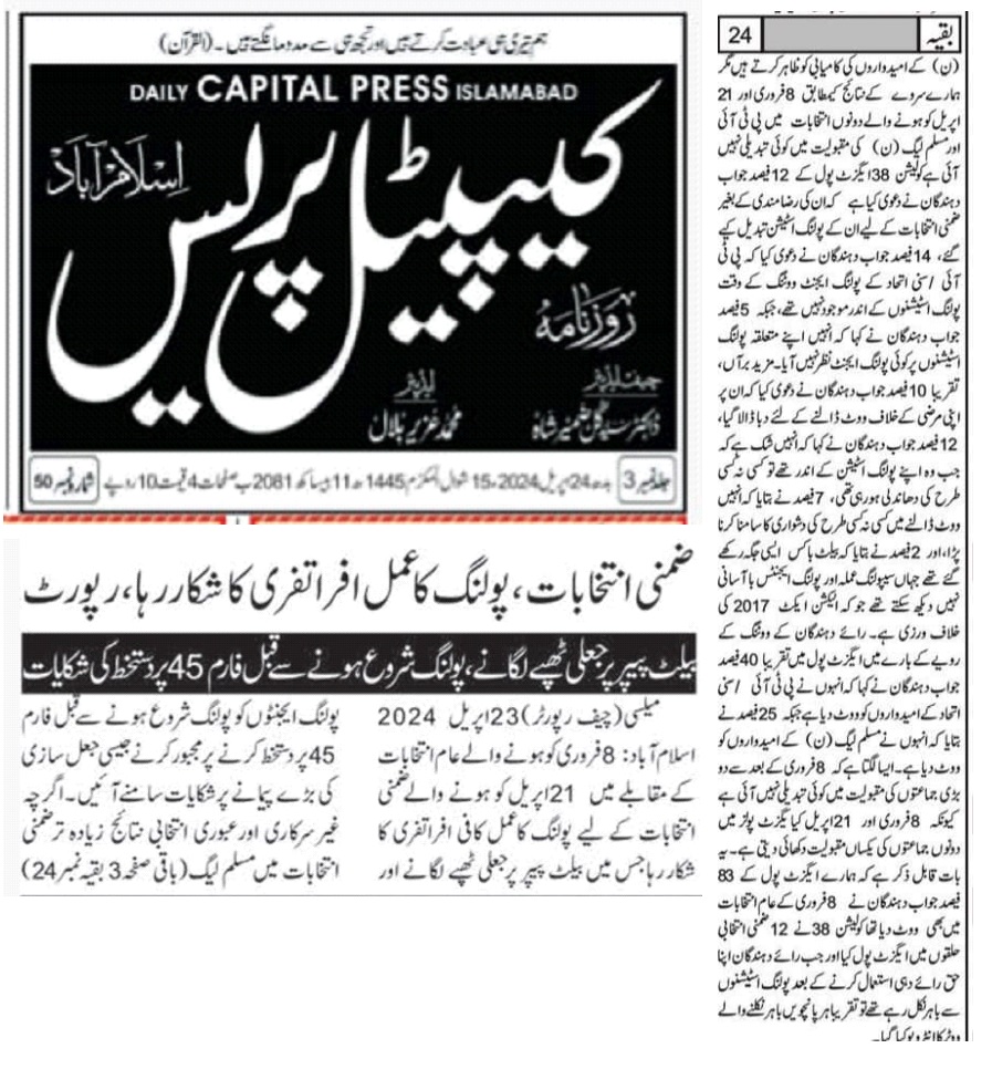 24 April 2024, Capital Press, Chaos and Concerns: By-Election Irregularities in Pakistan