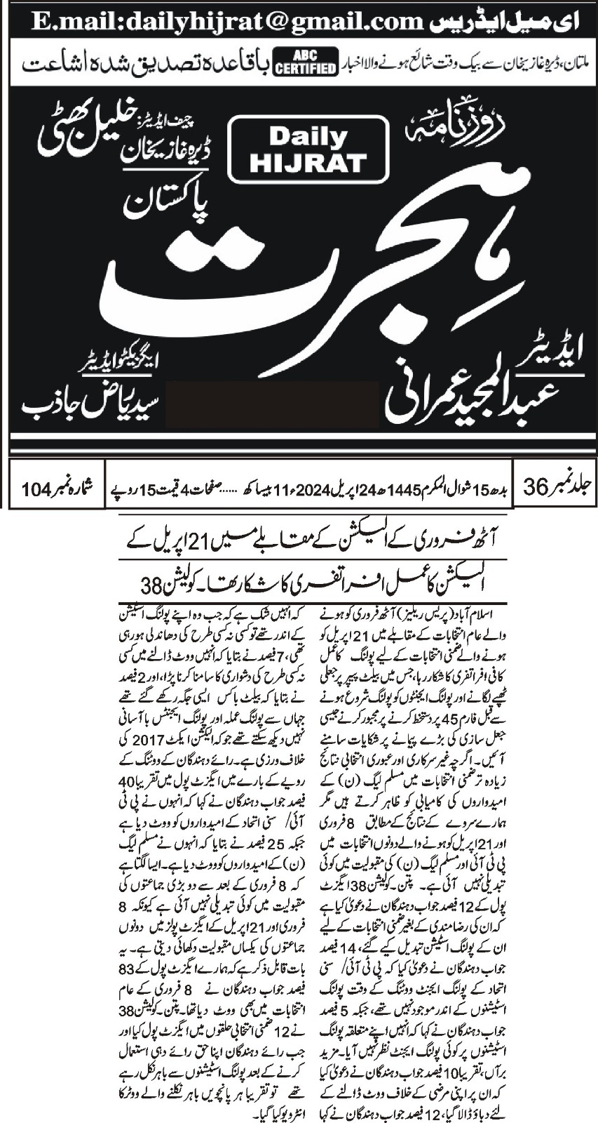 24 April 2024, Hijrat Pakistan, Chaos and Concerns: By-Election Irregularities in Pakistan