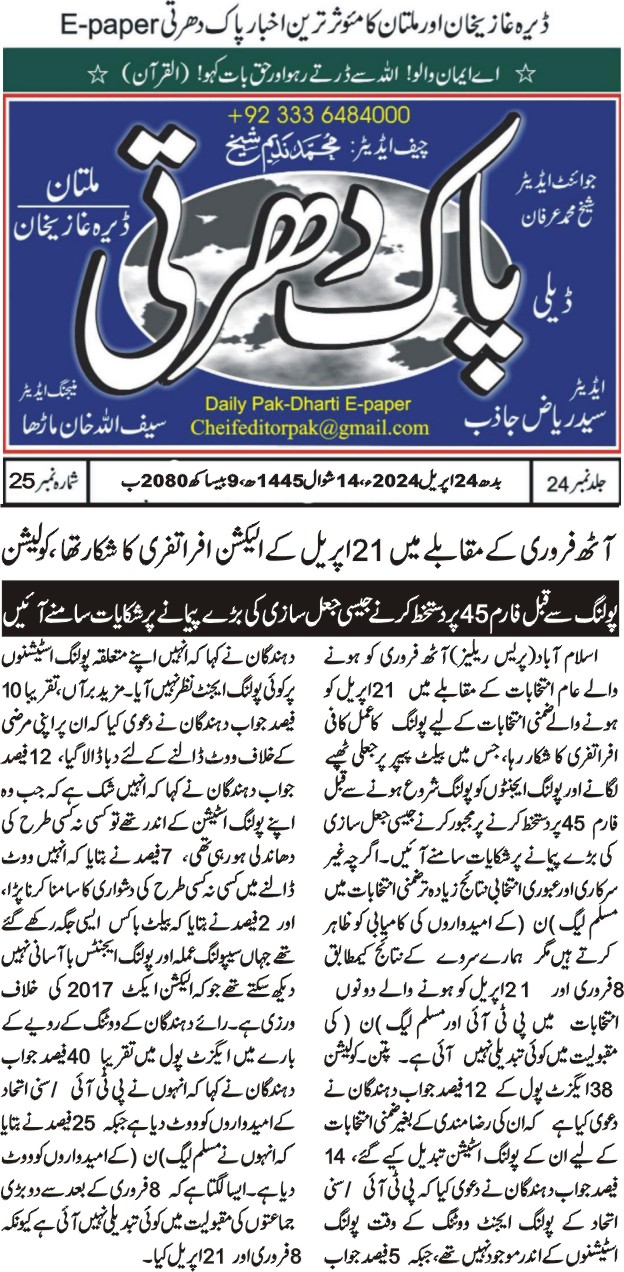 24 April 2024, Pak Dharthi Multan, Chaos and Concerns: By-Election Irregularities in Pakistan