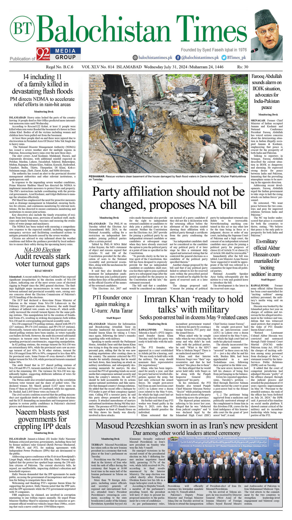 31 July 2024, Balochistan Times, Audit Reveals Stark voter turnouts Gaps in NA-130 Elections