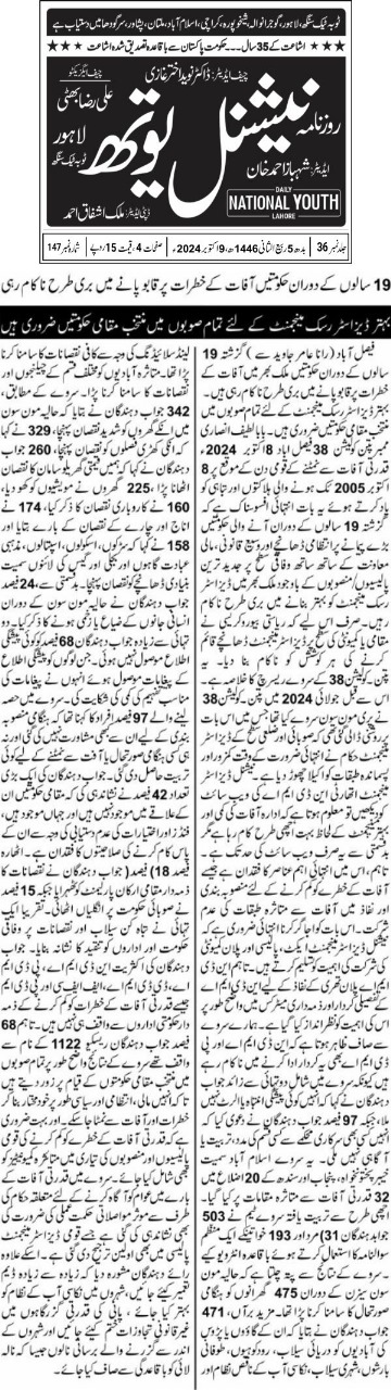 8 October 2024, Daily National Youth Lahore, Govt fails to improve disaster risk management