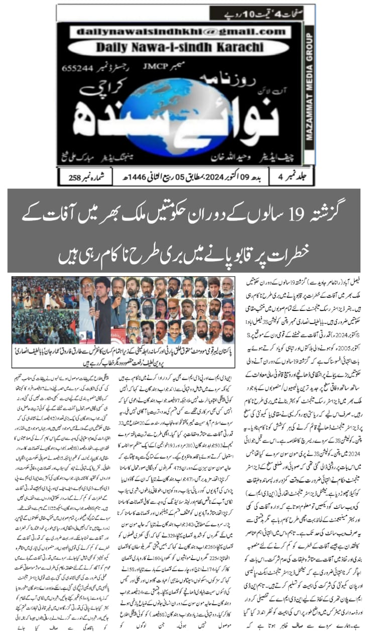 8 October 2024, Daily Nawai Singh Karachi, Govt fails to improve disaster risk management