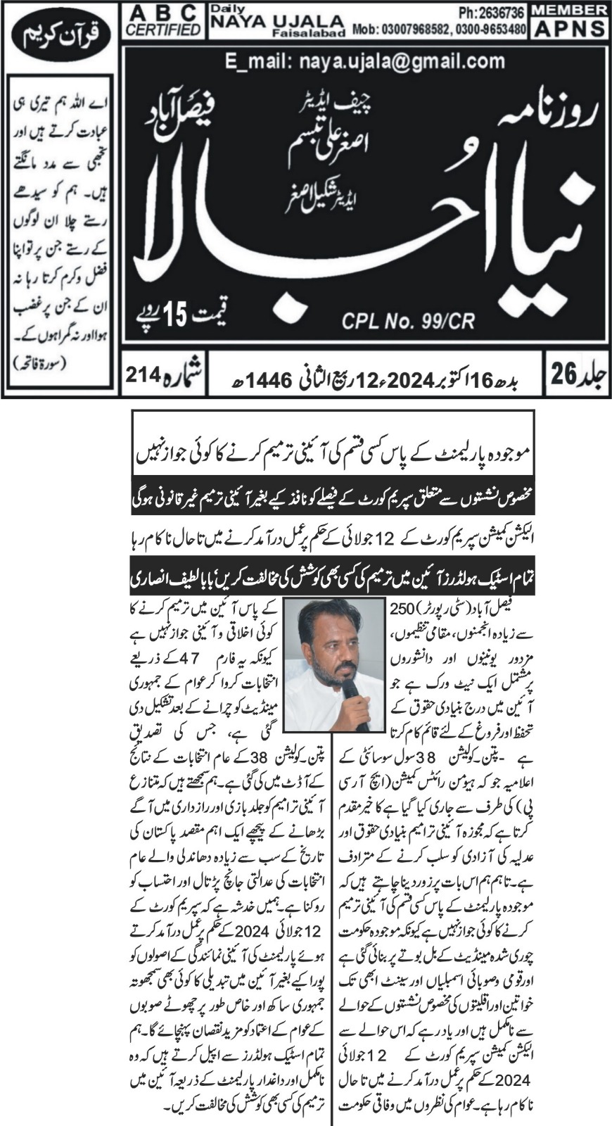 20 May 2024, Karamat Mughal, PTI won the all three seats of Islamabad ||Audit Report reveals|